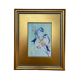 "Chickadee Love Birds" is by Cincinnati artist, Karin Sheer, who specializes in landscape, seascape, and still life oil paintings.