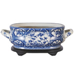 Birds & Butterflies Blue Porcelain Footbath with Base
