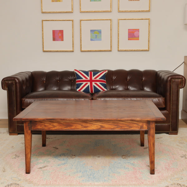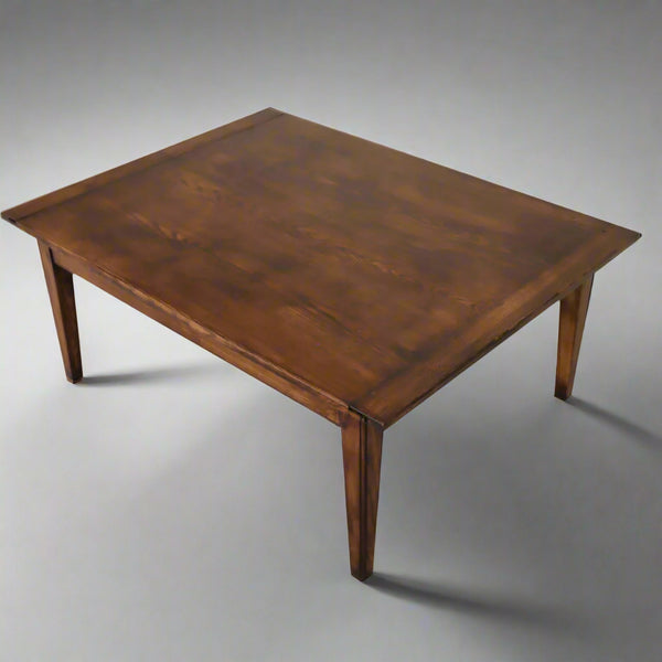 This charming coffee table captures the warmth and rustic appeal of a traditional English farmhouse piece while offering the durability and proportions suited for modern living. Handcrafted in the style of early 19th-century country furniture, it blends time-honored craftsmanship with a timeless, relaxed aesthetic.