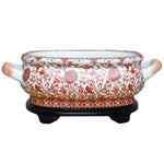 Coral Red Floral Porcelain Footbath with Base