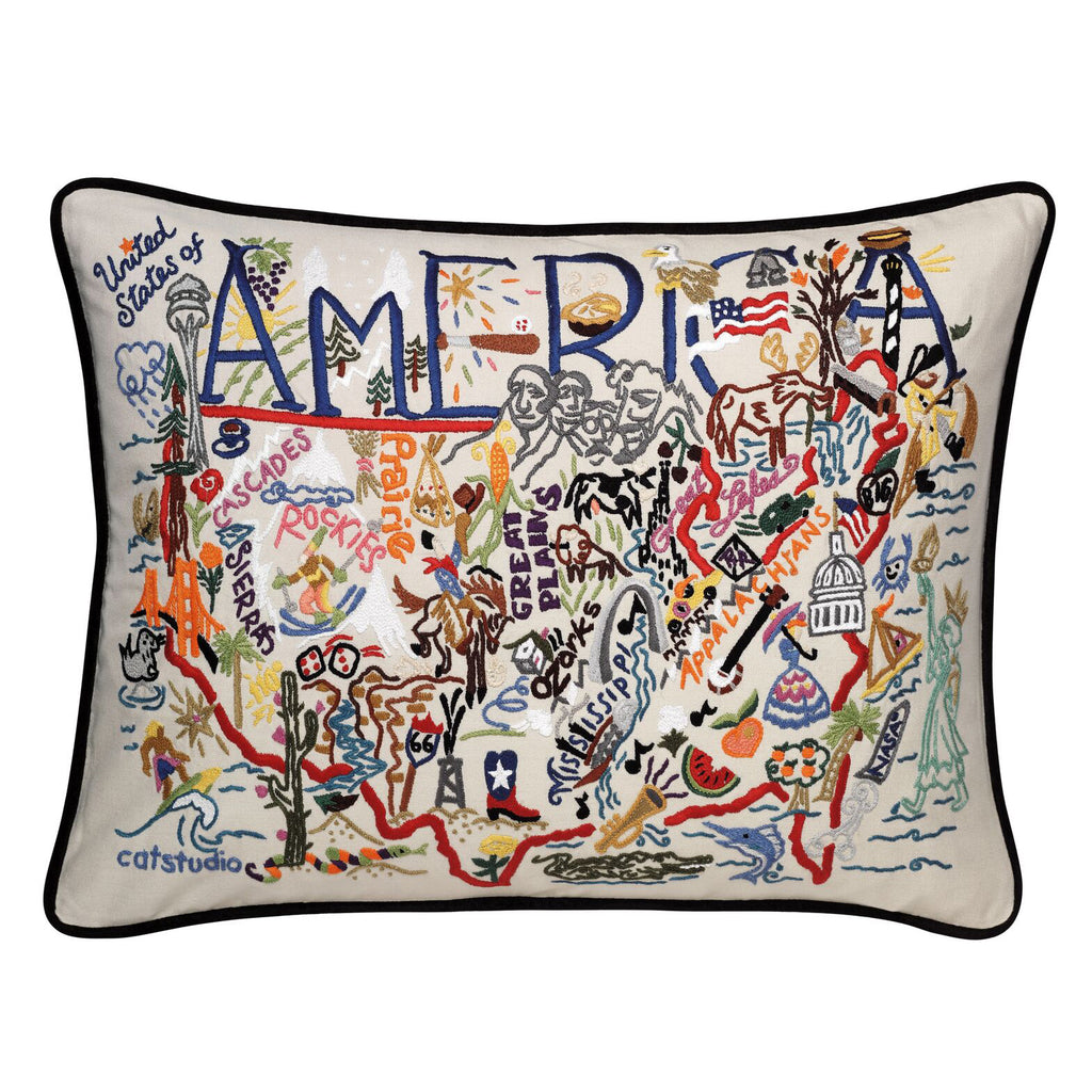 America Hand-Embroidered Pillow