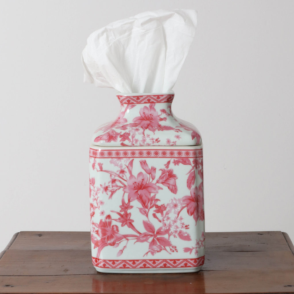 Pink Chinoiserie Porcelein Tissue Box Holder