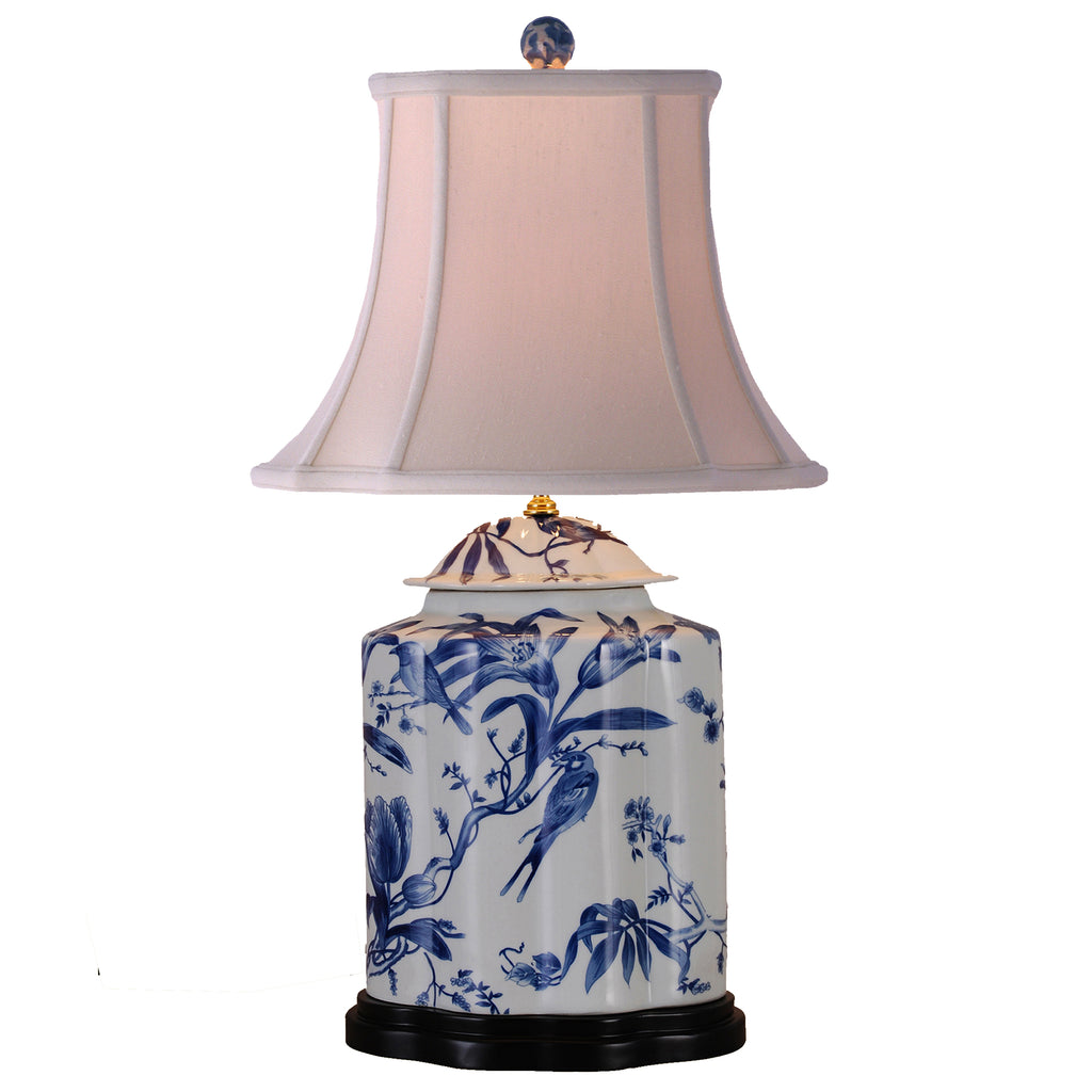 Paradise Birds Blue & White Porcelain Tea Jar Table Lamp, Small