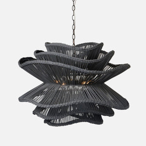 In an abstract shape inspired by flowers, six layers of rattan, whose densely braided edges coax them into waves, provide a soft diffused light. Now available in Dark Charcoal and White!