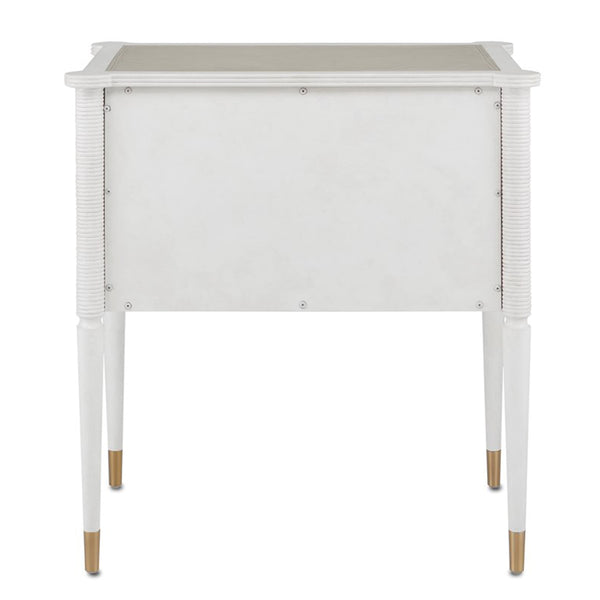 Made of mahogany and oak in a mix of Off White and Fog finishes, the Aster Nightstand was inspired by an antique from the Winterthur Museum. The gray and white nightstand has two drawers on which the brass pulls are warm accents in a brass finish. We also offer the Aster as a desk as part of our Winterthur Collection.
