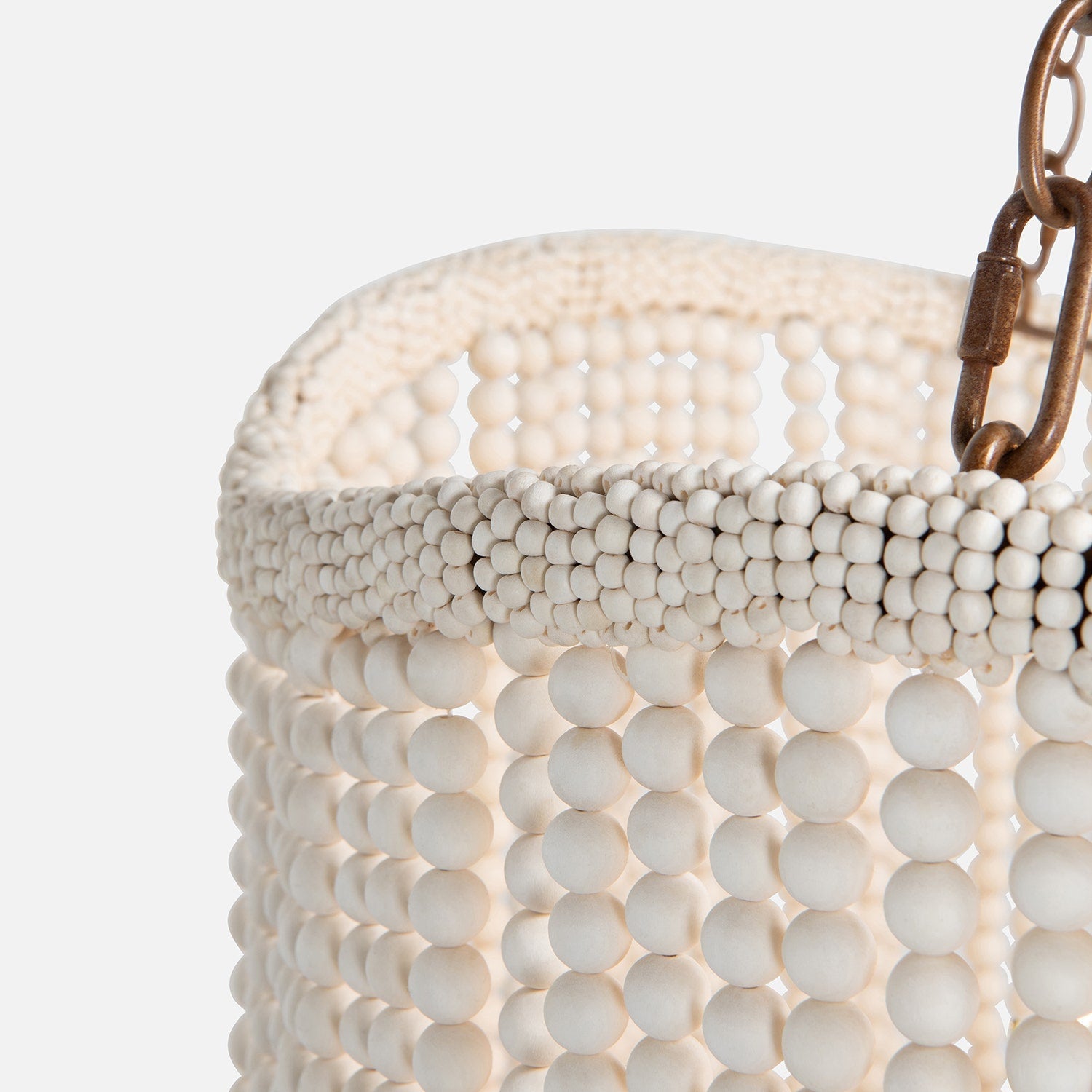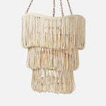 Three-tiered chandelier draped with hand-strung coco beads, perfect for creating a dramatic effect.