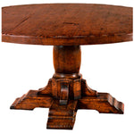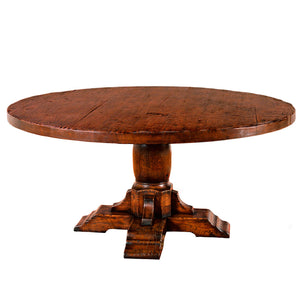 Simple French pedestal table with plain wood top.