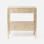 Our top-selling Conrad collection is now available in glamorous, gold-hued Champagne faux raffia. Matched in grandeur by proportions both sensible and modern, it will truly illuminate whatever space it's in. Drawers are lined with wood.