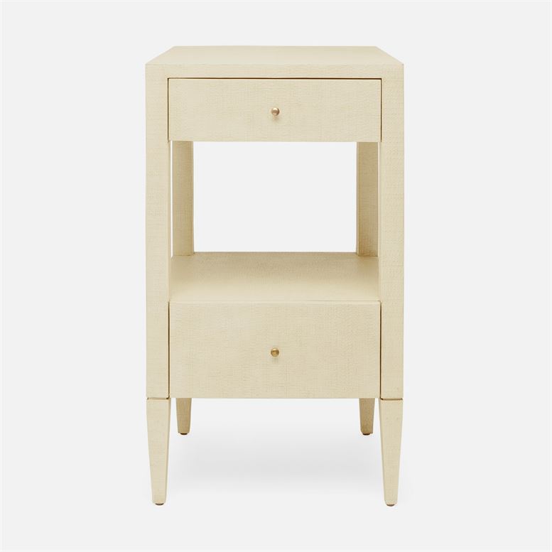 Our top-selling Conrad collection is now available in glamorous, gold-hued Champagne faux raffia. Matched in grandeur by proportions both sensible and modern, it will truly illuminate whatever space it's in. Drawers are lined with wood.