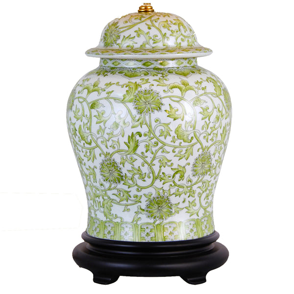 Floral Lemon Green Temple Jar Porcelain Lamp