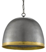 Leading the charge among our industrial chic offerings is our Matute Pendant, an edgy composition with a surprising mix of finishes. The dome-shaped shade is made of iron in a pewter finish. We dressed it up just a bit by adding a ring in a brass finish around the bottom edge. The interior of the shade has been treated to a polished brass finish to bring warmth to the illumination wafting from within the bold fixture.