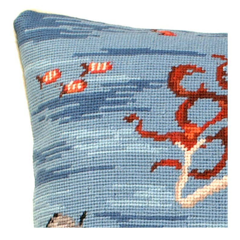Handmade needlepoint pillow made from 100% wool with a cotton velvet zippered back.