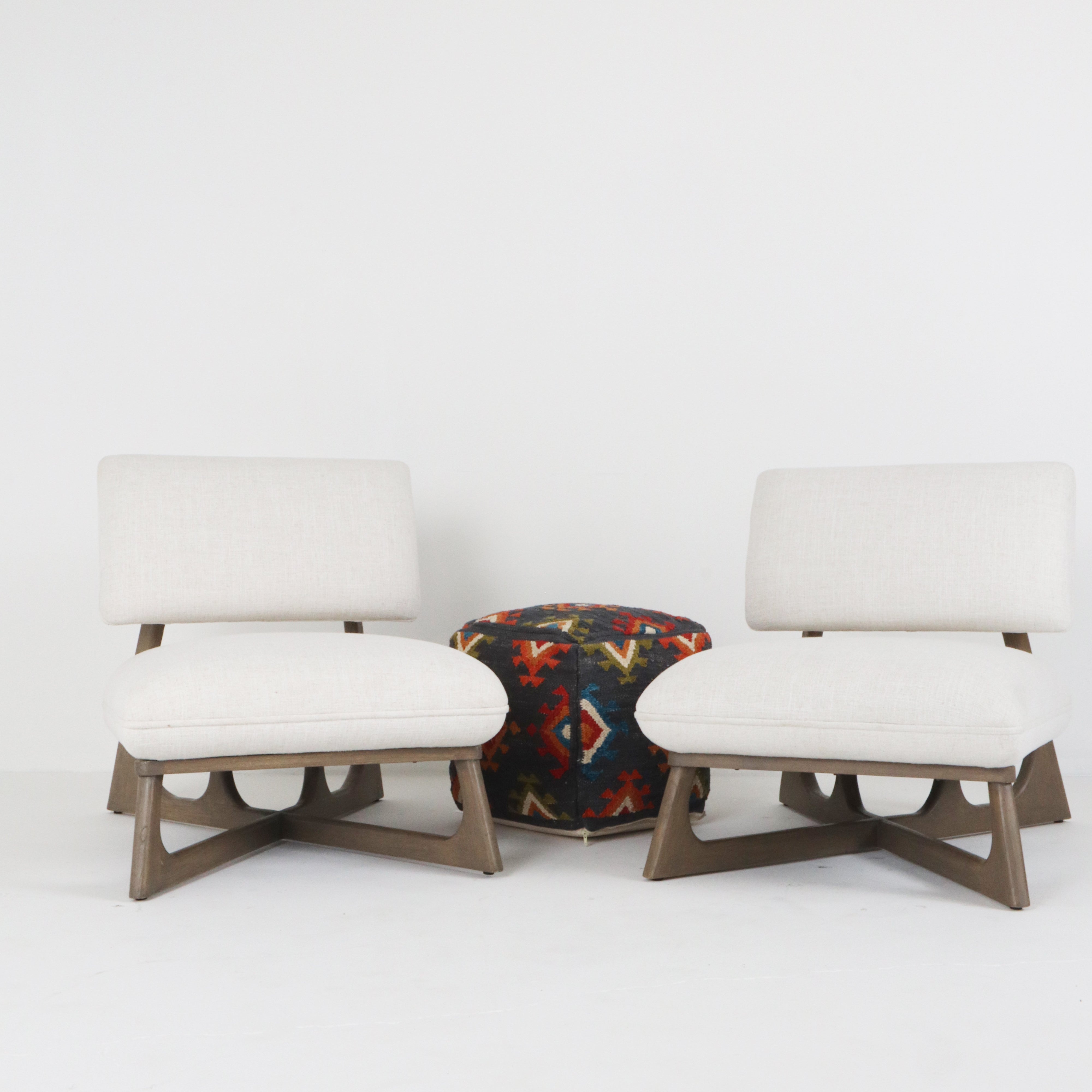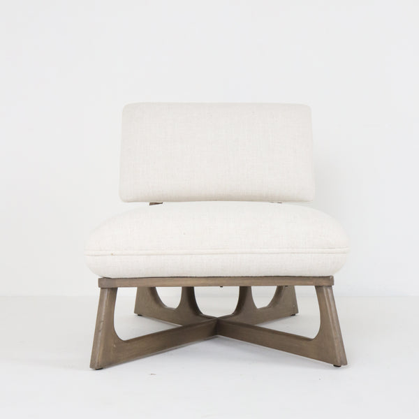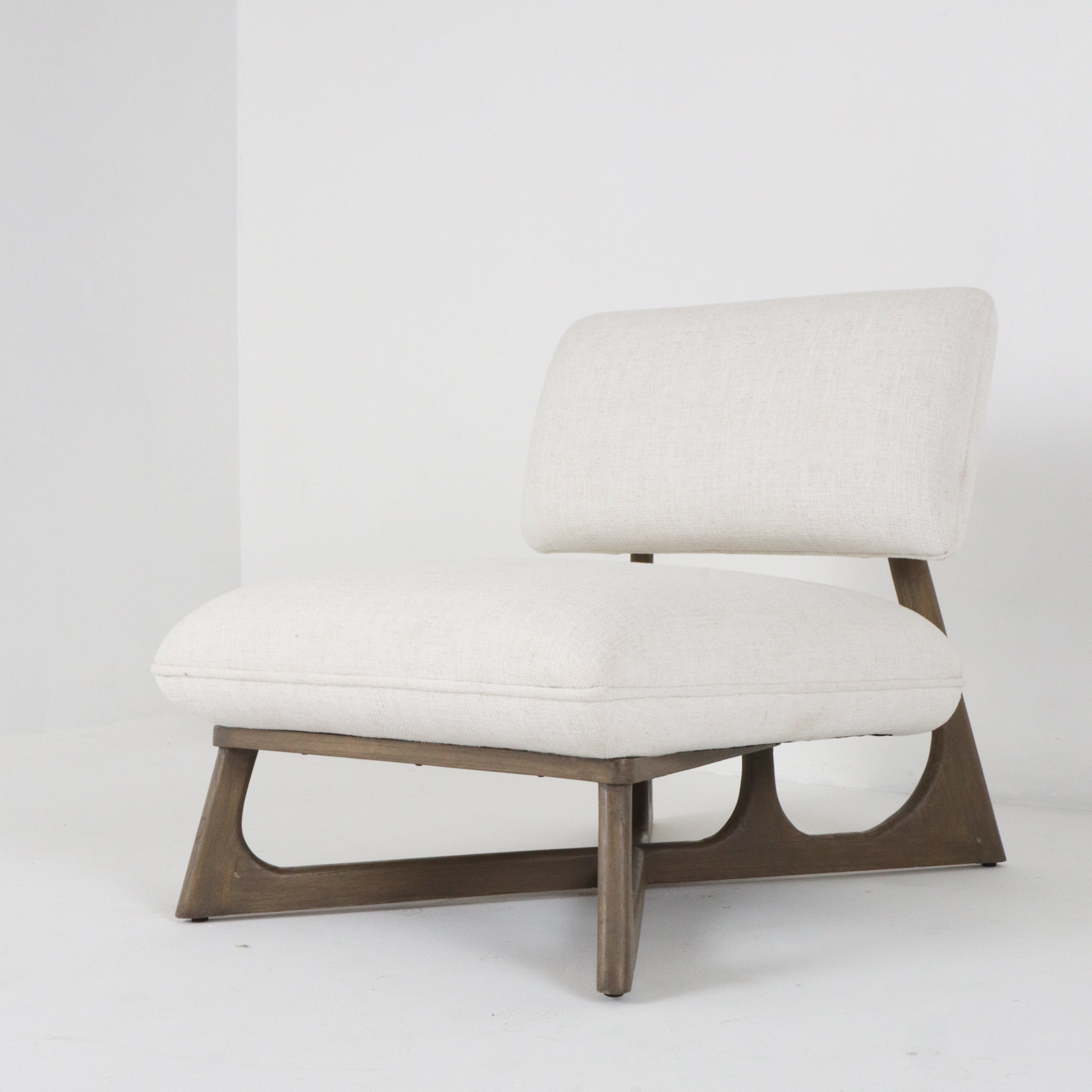 Cotton Blend Upholstery and Mindi Wood Frame; Grey Wood Wash Finish and Natural White Upholstery.