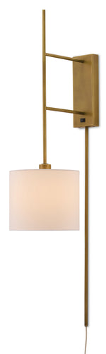 So much of nature’s bounty in a garden rises heavenward on a stem: such is the case in The Savill Garden for which our Savill Wall Sconce is named. Like a firefly perched upon a reed in Windsor Great Park, the one bulb beneath the tailored shade of this fixture effervesces when the light is switched on. The wall plate and stem, both in an antique brass finish, join the minimalist feel of the shade to make this an ideal sconce for a contemporary interior.