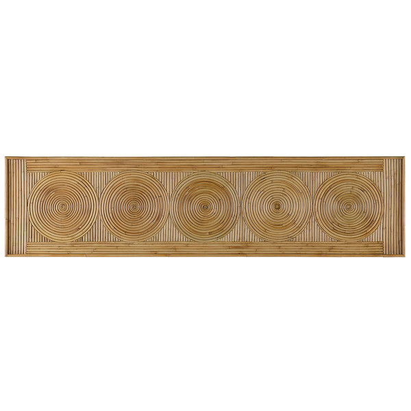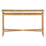 Our Silang Console Table is a rattan console table with a handmade geometric pattern on the top. Artisans painstakingly cut and fit the reeds in place to create this artful arrangement in the plant's warm hues. The material is protected by an inset glass top. We also offer the Silang as a drinks table.