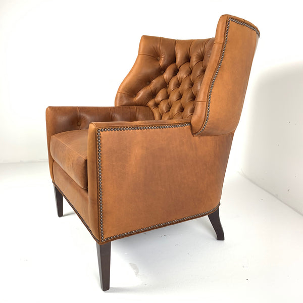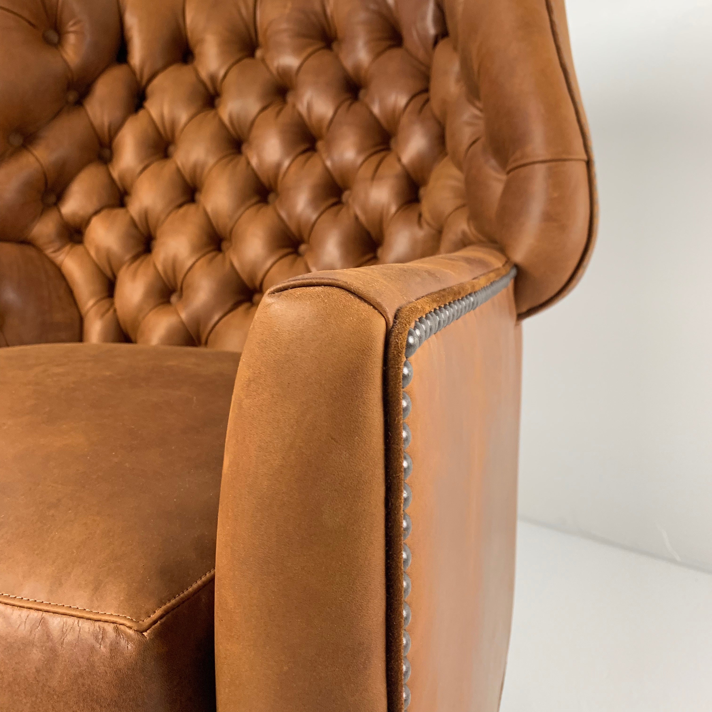 Shown in Tucson Nutmeg leather with contrasting welt on reverse side of leather, Mink wood finish, and No. 37 nail head.